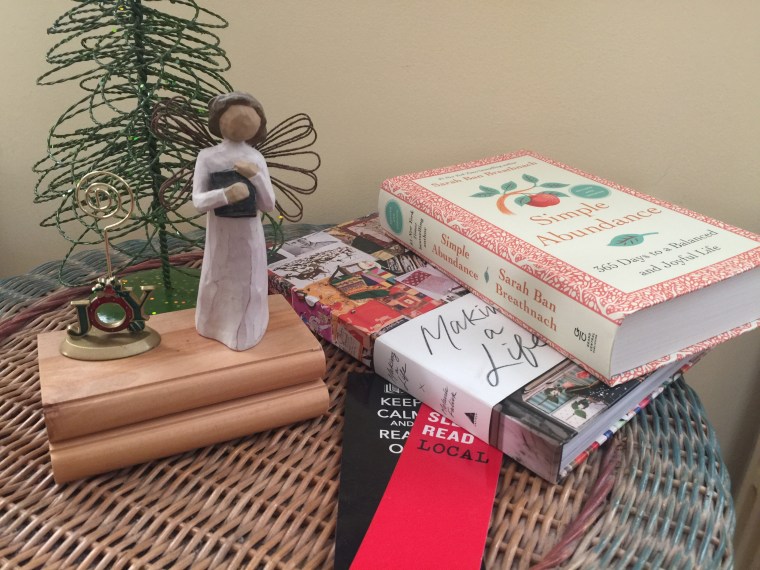 Two new books, under the tree, ahem, await my perusal. Gifts from me for me. Simple Abundance is an updated version marking the 25th anniversary of the original publication. 366 days of reading await! Norman’s gift is in the freezer: steaks; burgers; pork chops…what he requested. In my car, new floor mats…