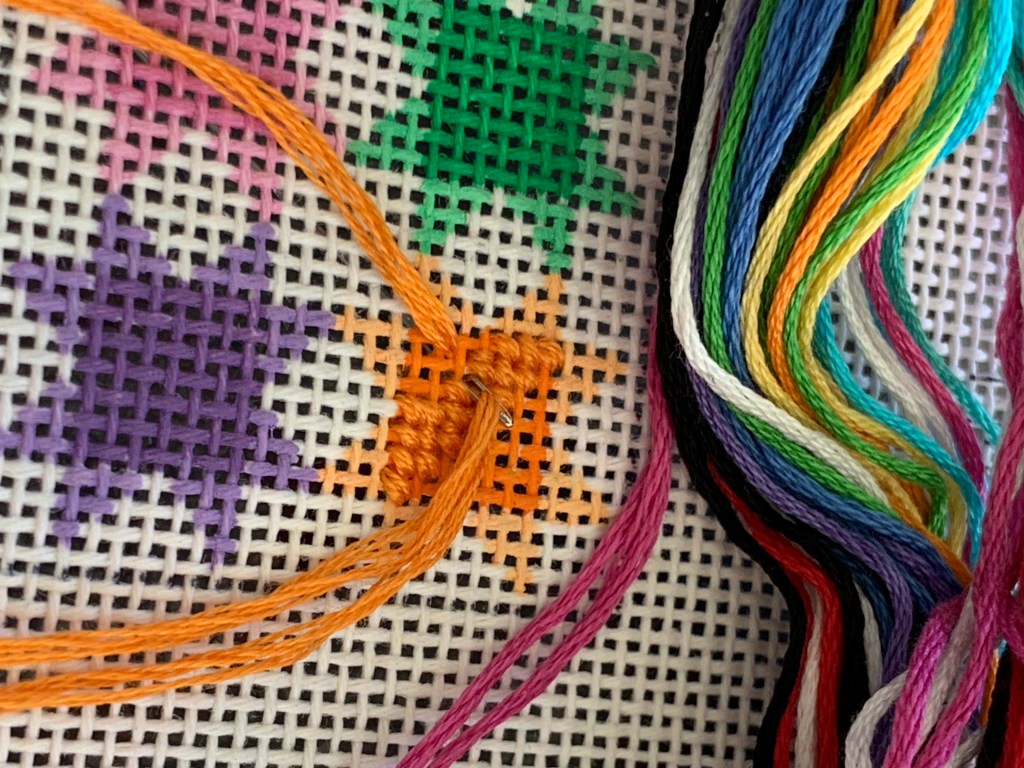 The star is a needlepoint I found as I’ve been weeding my stash of projects – a project long overdue but also one that has very tangible results. And this too, makes me happier.