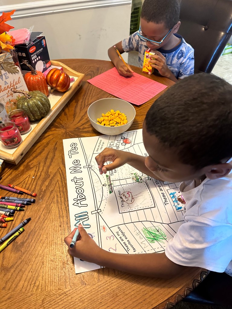 What a lovely day … I really enjoyed “feeling” the cooler breeze and sleeves! and seeing the boys. Elias’ autobiography is going to be a work of art. so cool they start the kids early!