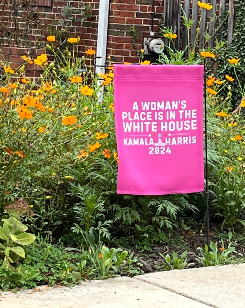 Sept 1 -Yesterday was not at all as I’d intended. Went To B&N to pick up a couple books – by same author. A quick once over, looks like each will be a “ good read”. Tho’ I say to myself: time will tell. Other errands included Giant & Shopper grocery store runs. Considered “TarJay” (Target) and Office Depot stops – they are next door to each other but decided: “ Nah!” Once home, decided to take a walk – weather t’was nearly perfect for a leisurely afternoon stroll through the neighborhood . Trees, Flowers and Sky perfectly “autumnish”. I was intrigued and enchanted by all the “Kamala for President “ signs in folks’ yards, on cars, etc. This is Washington DC, the Nation’s capital …